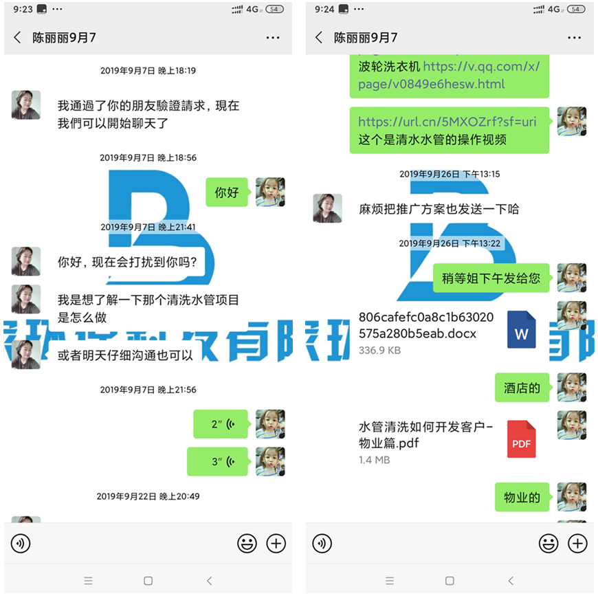 一開始還以為她是免費清洗的,后面她說一家收400。國慶期間麗姐基本天天在清洗,每天都有單子的。商務人員問她怎么那么厲害一下有那么多單,而麗姐表示其實這個項目也并沒有那么難推廣,因為公司的扶持推廣思路很好然后就是自己也肯做肯執行加上把服務做和很多客戶也會轉介紹。