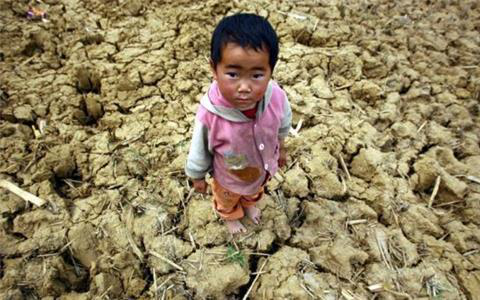 一名周歲的女孩站在干涸的土地上,蠟黃的臉龐,身著臟臟的衣服,眼神里流露出對水的渴望!