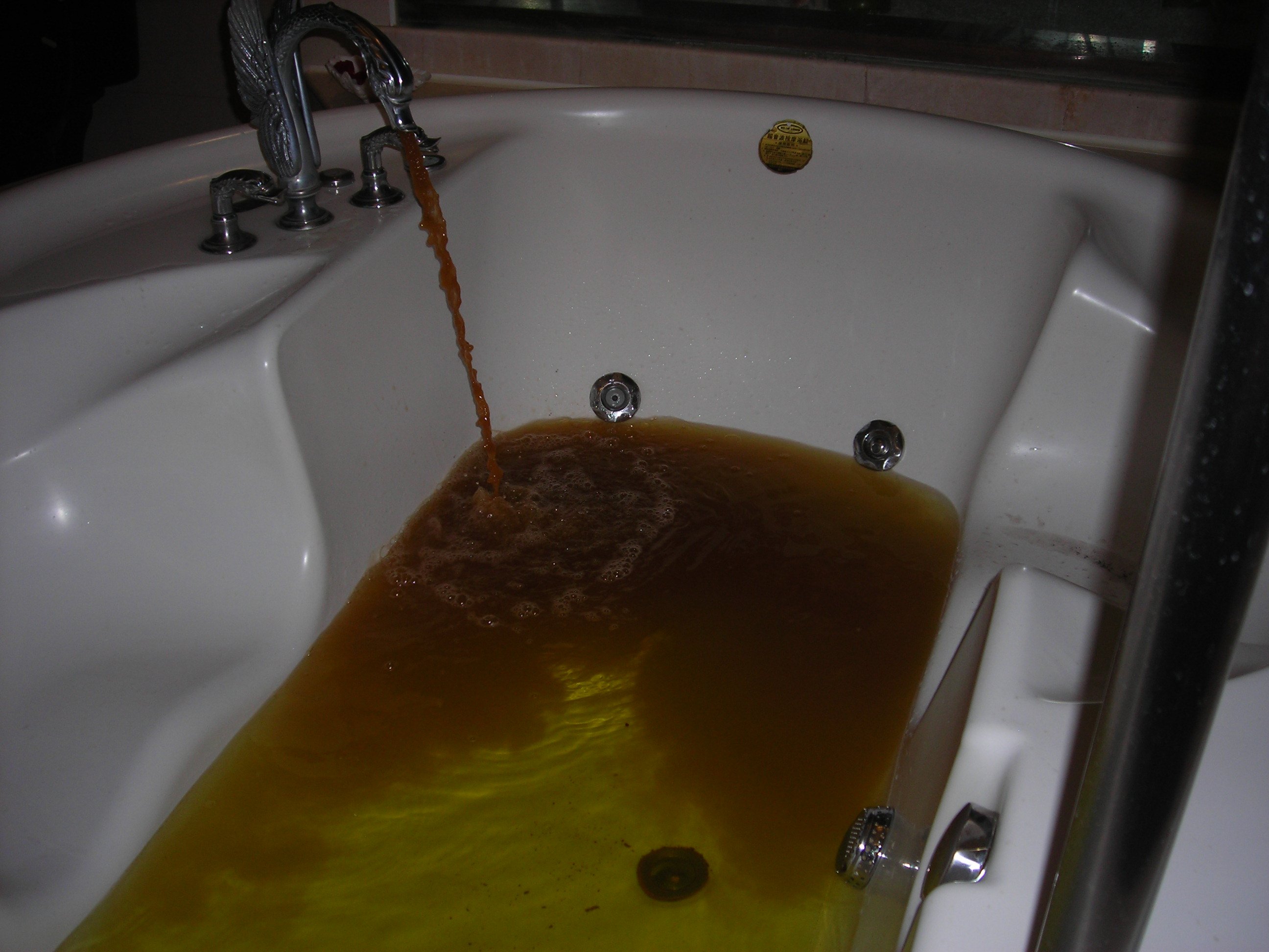 紅色——可能是由于鐵銹或藻類造成的;黑色——多由于金屬的污染造成;黃色或棕黃色——因?yàn)殂t或腐殖質(zhì)的污染所致。